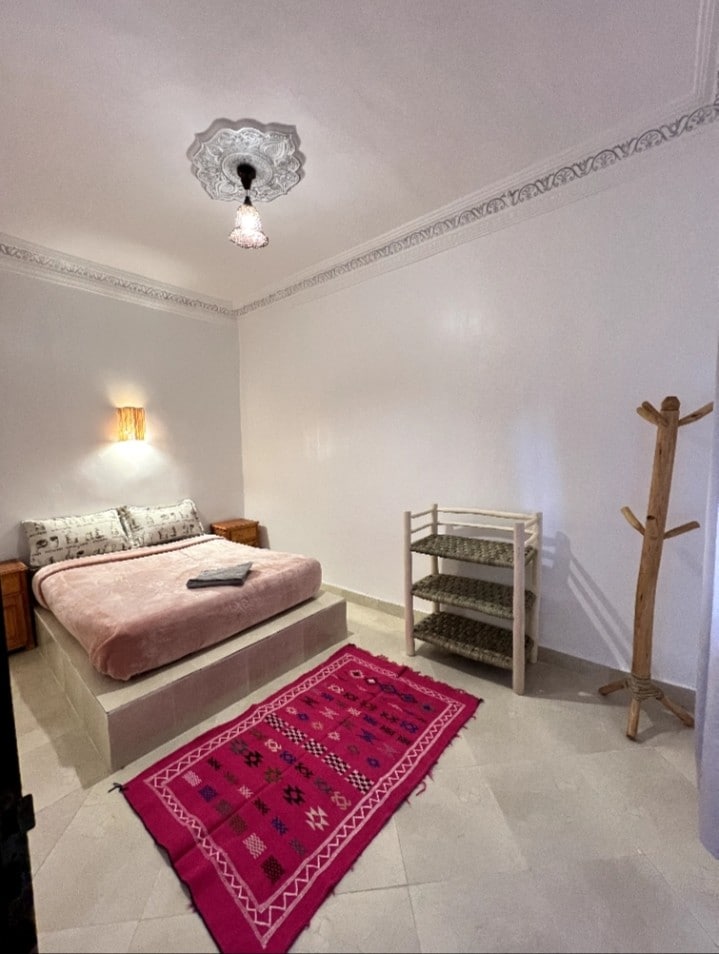 490dh la nuit par personne minimum 2 pers capacité 6 pers Petit déjeuner inclus Villa 400m², piscine, salons cheminée, 3 chambres 3 salles d'eau, cuisine. Centre ville à 5mn Internet TV Wifi Vous adorerez cette escapade unique et romantique ,dans un cadre à la décoration berbère raffinée ; De nombreux petits salons permettent de se reposer et la piscine de se rafraichir; Calme et silence en plein cœur de ville La présence discrète d' Aziza fait de votre séjour une escapade rare et unique