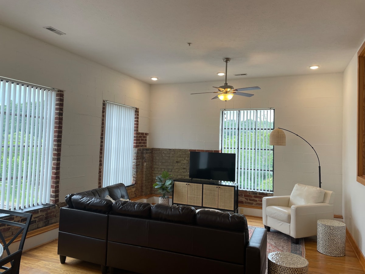 Es difícil encontrar una ubicación más privilegiada que este loft privado en el centro de la ciudad. Se rumorea que Thomas Jefferson incluso se quedó aquí. Cargado con el hermoso e histórico encanto de las paredes de ladrillo, los techos altos y los pisos de madera, este espacio tiene todas las nuevas comodidades modernas que deseas. Ubicado en la esquina de 12th y Main Street frente al mercado comunitario, está en el centro de todo el centro de la ciudad con vistas al río y a pocos pasos de restaurantes, tiendas y senderos para caminar.