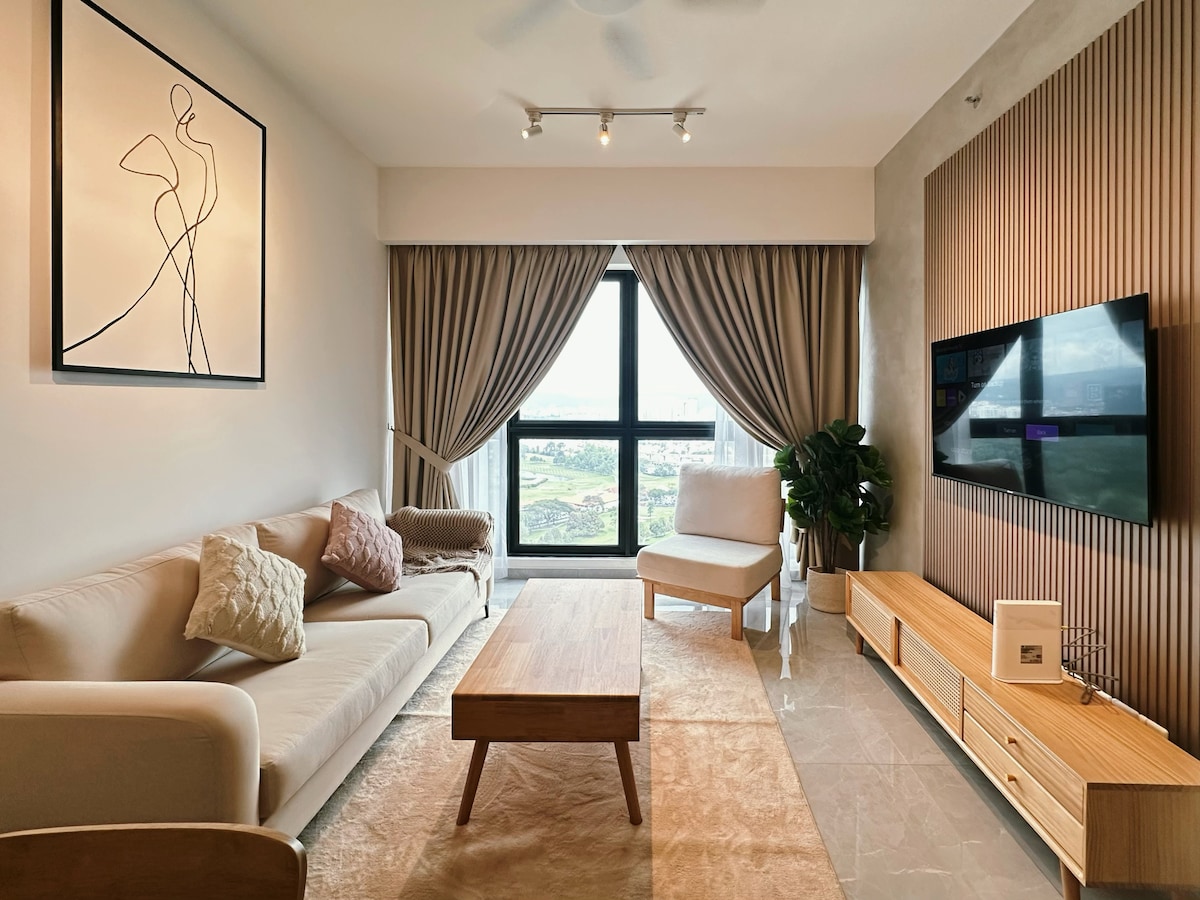 Mejora tu estancia en KL con este impecable dúplex de 3 camas/3 baños en el prestigioso NOVO Ampang en Jalan Ampang. Disfruta de amplias vistas a la ciudad, incluido el KLCC, a través de ventanales de cristal, una suite principal con colchón híbrido tamaño queen y ducha de efecto lluvia en el baño, dos dormitorios adicionales con cama tamaño queen, cocina gourmet totalmente equipada, sala de estar con cine en casa, wifi de fibra ultrarrápido y piscina residencial en la azotea, gimnasio y sauna. Dos plazas de aparcamiento dedicadas incluidas. El estilo se une a la comodidad para familias, amigos o viajeros de negocios