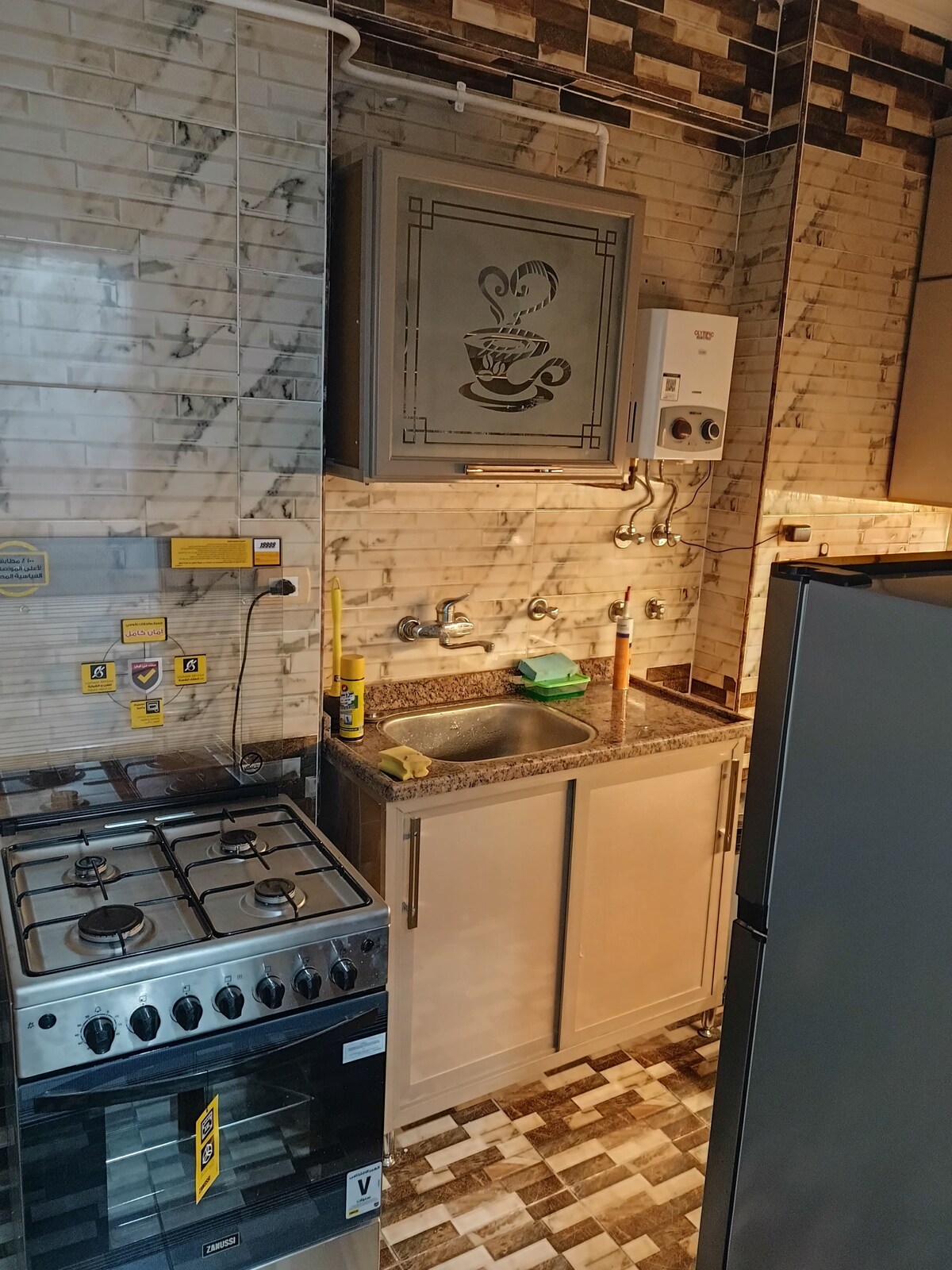 ¡Acogedor apartamento de 2 dormitorios en Fayoum! Disfruta de una estancia totalmente equipada con WiFi, ventiladores, una elegante sala de estar y una cocina completa (nevera, estufa, hervidor de agua, lavadora, utensilios de cocina). Situado en una zona tranquila y segura, a solo 5 minutos de Al-Masala y a 10 minutos de Al-Sawaqi. Perfecto para familias, amigos y viajeros de negocios. ¡Reserva ahora y disfruta de una experiencia cómoda y relajante!