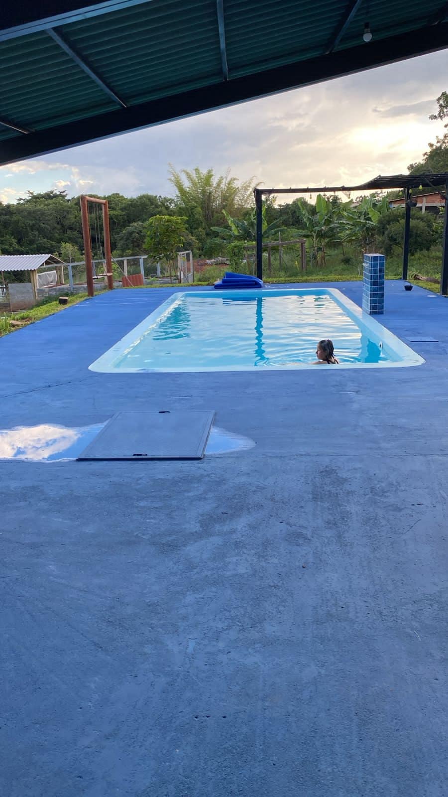Olvídate de tus preocupaciones en este lugar espacioso y tranquilo. 1 habitación suite americana, amueblada con cama Queen, trébede y armario. 2 baños. Cocina con armarios, nevera, cocina cooktop, encimera con taburetes y todos los utensilios de cocina. Barbacoa, espacio social con mesa, sillas, TV, etc. Piscina con calefacción solar, hidromasaje, cascada, luces, todo accionado por control remoto, además de un hermoso jardín.