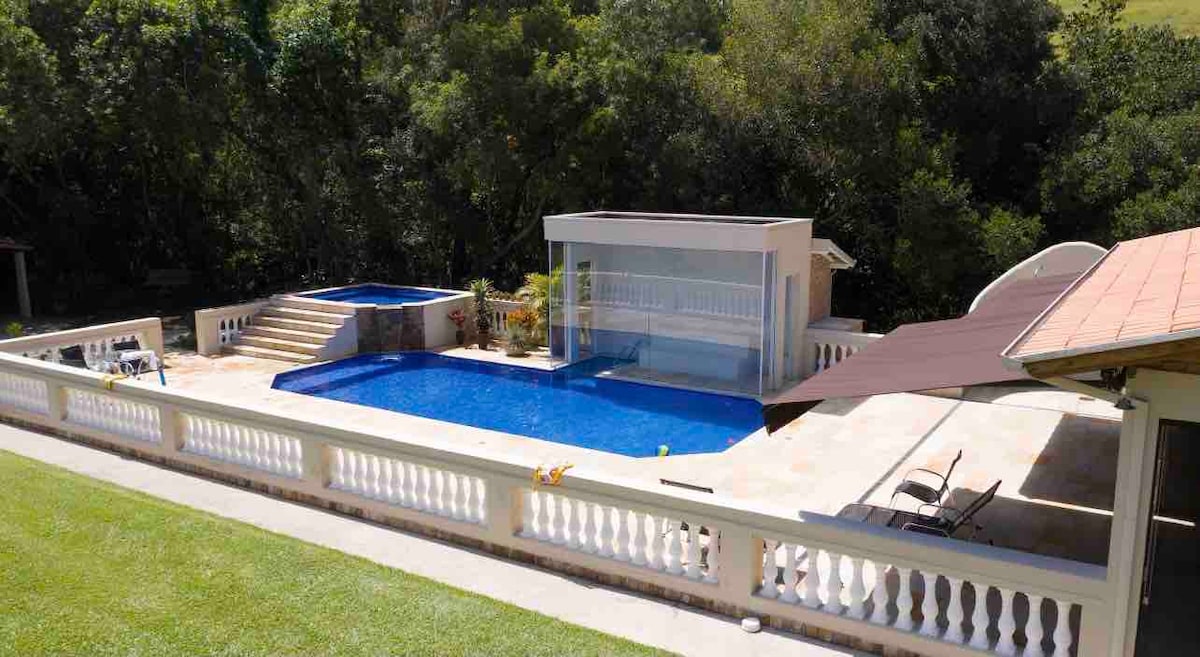 Disfrute de la belleza natural que rodea este lugar histórico. La granja es un ambiente único y confortable. Se encuentra a 6 km de la ciudad de Jacutinga con una altitud de 900 m al lado del pesquero Aparecidinha y al lado del pico de la horquilla con 1100 m de altitud, donde se puede hacer una caminata por el sendero, hasta el pico, donde tendrá una maravillosa vista panorámica. ¡Contiene 5 suites, área exterior con piscina, barbacoa y cocina completa con todos los electrodomésticos y utensilios!