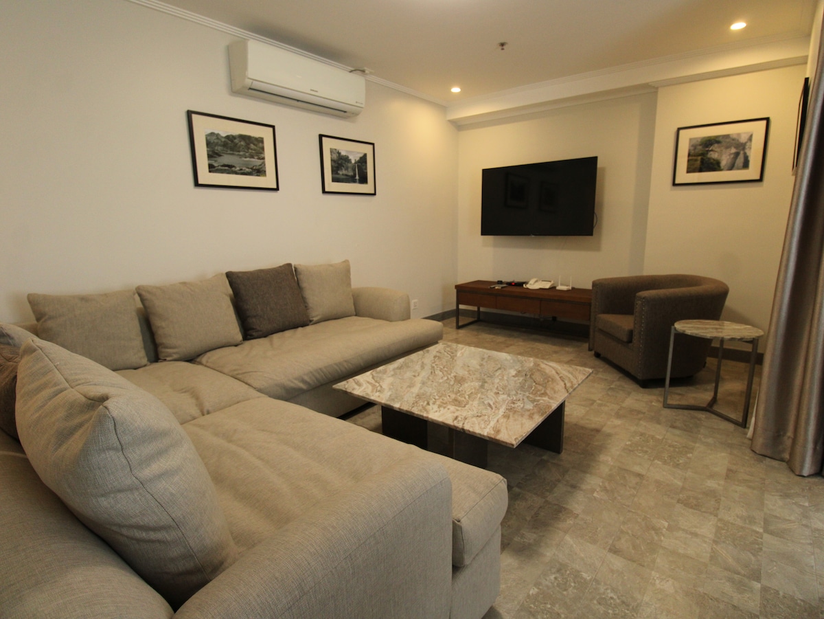 Un lujoso apartamento de un dormitorio recientemente remodelado perfecto para 2-3 huéspedes. El apartamento tiene 65 metros cuadrados y está situado en el séptimo piso de Kandi Towers 2, con una fantástica vista del monte Arayat.