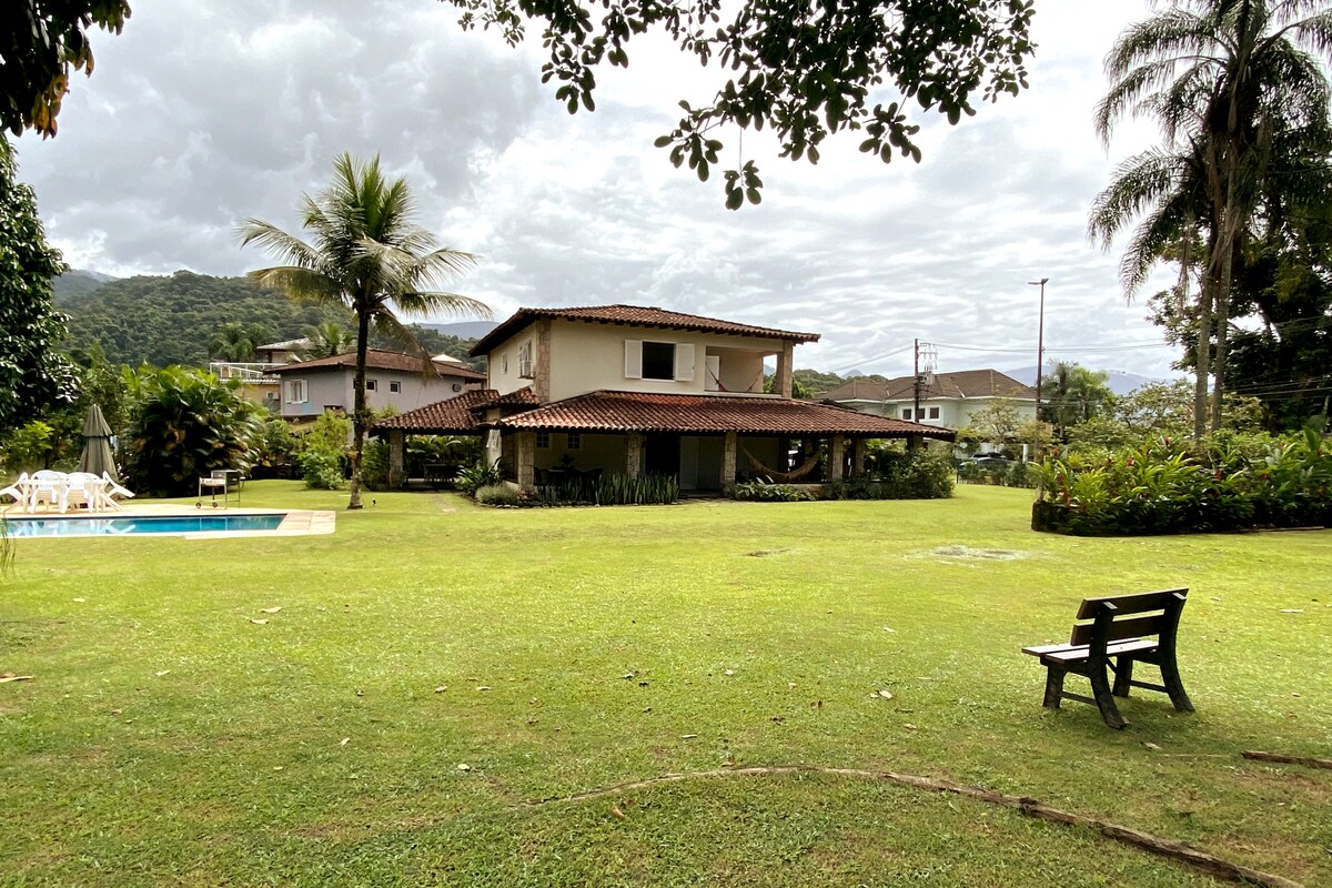 #Chácara con el mayor número de reseñas de Angra# Dos piscinas, una con aire acondicionado y la otra con agua natural. Estacionamiento privado para hasta 5 coches. Visual de montaña y cascada. Sauna de vapor con vistas a la cascada. Campo de fútbol, sala de juegos, ping pong, piscina, tótem, mesa de cartas, TV. Ducha dividida y de gas en las 4 suites. Barbacoa, cervecería y congelador. Mercado cercano. Tenemos un generador de energía eléctrica en caso de que la red pública caiga a 15 minutos del mar de Angra y cerca de la Br-101.