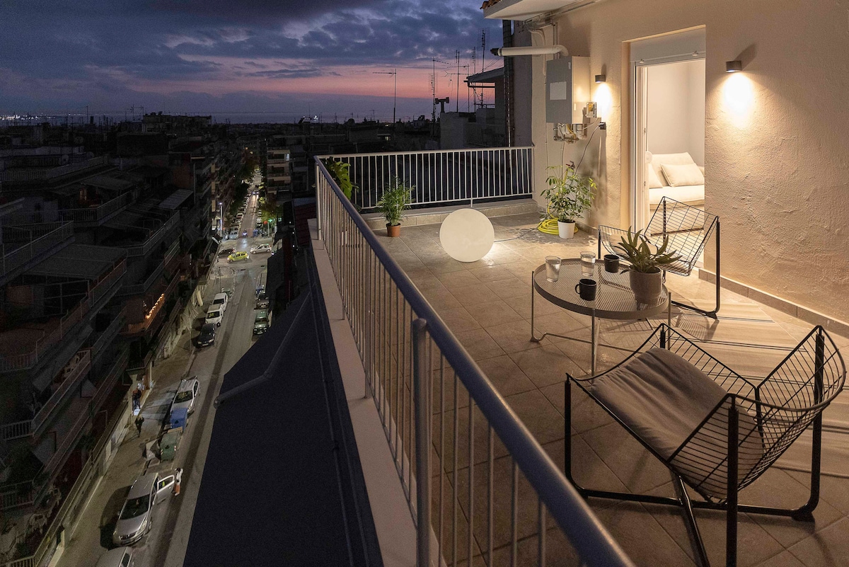 Apartamento único de 1 dormitorio totalmente equipado en el séptimo piso de un edificio renovado de 2020 con un impresionante balcón en la terraza. Internet de alta velocidad, servicios de primera calidad, una lujosa cama tamaño queen y tu propia cuenta de Netflix son solo algunas de las cosas que te ofrecemos. Luminoso, espacioso, con todo lo que puedas necesitar para disfrutar de tu estadía en el corazón de la vida social de Tesalónica, a solo 5 minutos de la plaza Aristóteles y a 2 minutos del paseo marítimo. ¡Te damos la bienvenida y disfruta de tu estadía!