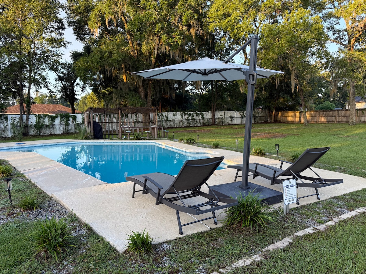 Olvídate de tus preocupaciones en este espacio espacioso y sereno. Relájate junto a la piscina privada en el amplio patio privado. Disfruta del tranquilo y espacioso paisaje del patio trasero privado mientras bebes tu té o bebida favorita. Lea un buen libro en el patio cerrado con vistas a una hermosa piscina. Tu próximo refugio vacacional privado está más cerca y es más asequible que nunca con todas las comodidades que esta encantadora casita lejos de casa tiene para ofrecer. ¡Haz de tus próximas vacaciones un agradable y tranquilo retiro aquí!