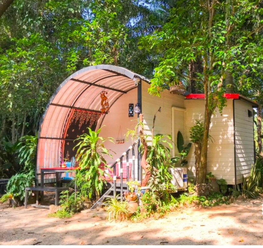 Nuestra casa de campo no solo está rodeada de un hermoso bosque y una montaña para dormir, sino que también está rodeada de plantas mágicas en un jardín tropical que ayudan a los huéspedes a relajarse durante todo el día. Hay habitaciones cómodas con aire acondicionado y ventiladores, y por la noche se pone fresco. Las opciones de transporte, las buenas carreteras y el Internet wifi te harán sentir como en tu propia propia casa. Estarás encantado de acampar en el patio delantero, donde puedes ver las montañas y la selva.