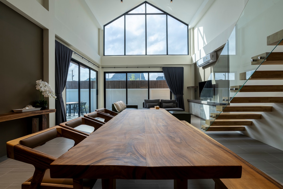 Una villa nueva con una amplia zona de jardín. La gran piscina de sal está lista para servir a nuestros huéspedes. La villa se encuentra a solo 10 minutos de la playa más popular de Krabi, donde llamaron “Aonang Beach”. La villa que rodea la naturaleza pura, la zona verde y el pequeño canal. La villa es muy bienvenida a todos los huéspedes que aman la naturaleza viajando. Además, ofrecemos una granja de frutas orgánicas en el lugar para que la experimentes.