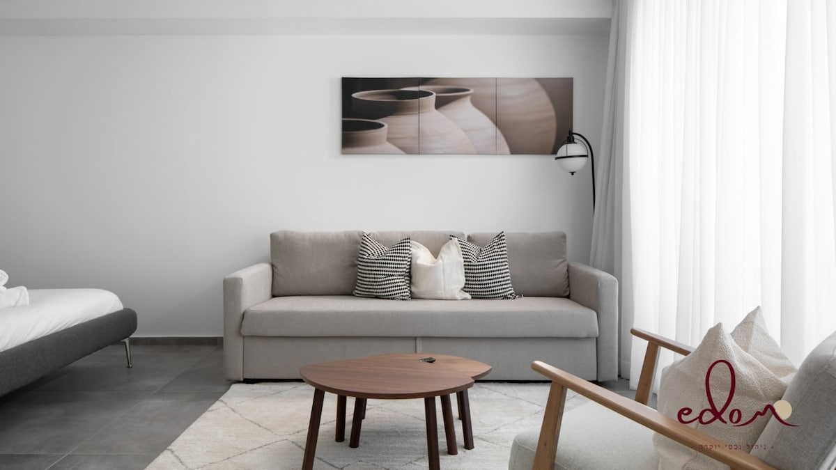 ¡Bienvenido a su refugio perfecto en Eilat! Este agradable y elegante apartamento boutique incluye un dormitorio y está especialmente diseñado para la comodidad y la relajación. Ubicado en el tranquilo y codiciado barrio de Shahmon, el apartamento ofrece una experiencia de alojamiento tranquila con fácil acceso a todo lo que Eilat tiene para ofrecer.