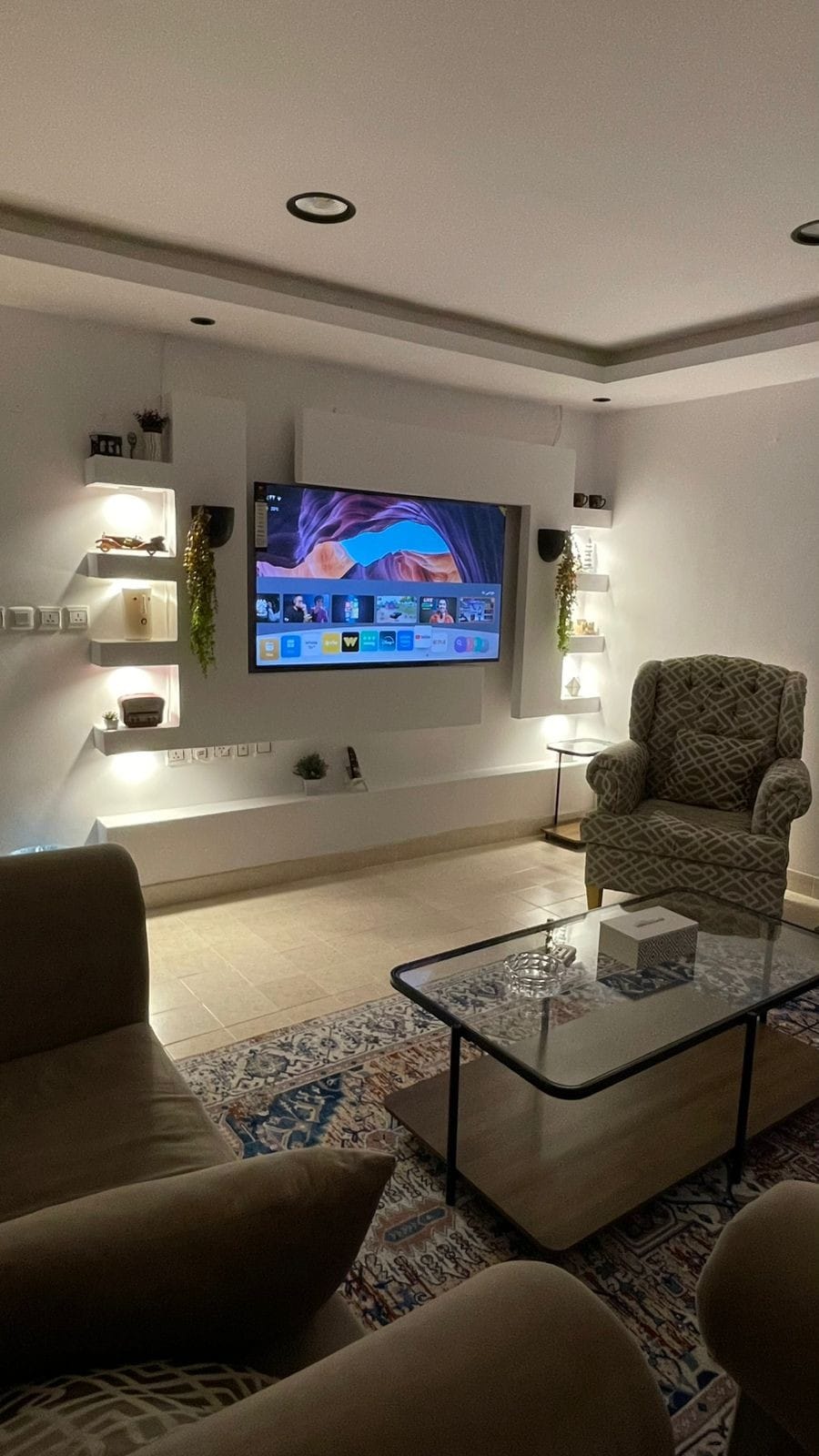 شقة فاخرة وأنيقة بعمارة جديدة وموقع مميز بدخول ذاتي لقضاء ليلة هادئة تتميز بروعة التصميم مجهزة بكل التفاصيل الجميلة لقضاء أجمل الأوقات وتتكون من غرفة نوم ودولاب تخزين ومنقي هواء مع اطلالة على شارع حيوي وصالة مميزة مزودة بإنترنت مجاناً وشاشة 65 بوصه مزودة بساوند بار من سامسونج مع اشتراك نيتفلكس مفعل وشاهد ويوتيوب ومختلف البرامج اهلاً بكم ضيوفنا الكرام .