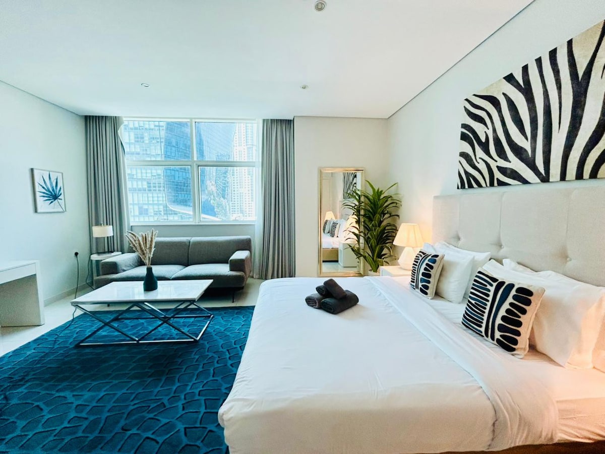 Apartamento tipo estudio extra espacioso y acogedor en una excelente ubicación en el puerto deportivo de Dubái. Está muy bien ubicado con la estación de metro justo detrás del edificio y Marina Walk se encuentra a solo un par de minutos. Cocina bien equipada con todo lo que puedas necesitar para preparar tus comidas. La tienda de conveniencia 24/7 está en el edificio y las variedades de restaurantes alrededor. Tiene vistas parciales de Marina con vistas a distancia del campo de golf. El edificio está súper limpio y muy tranquilo.