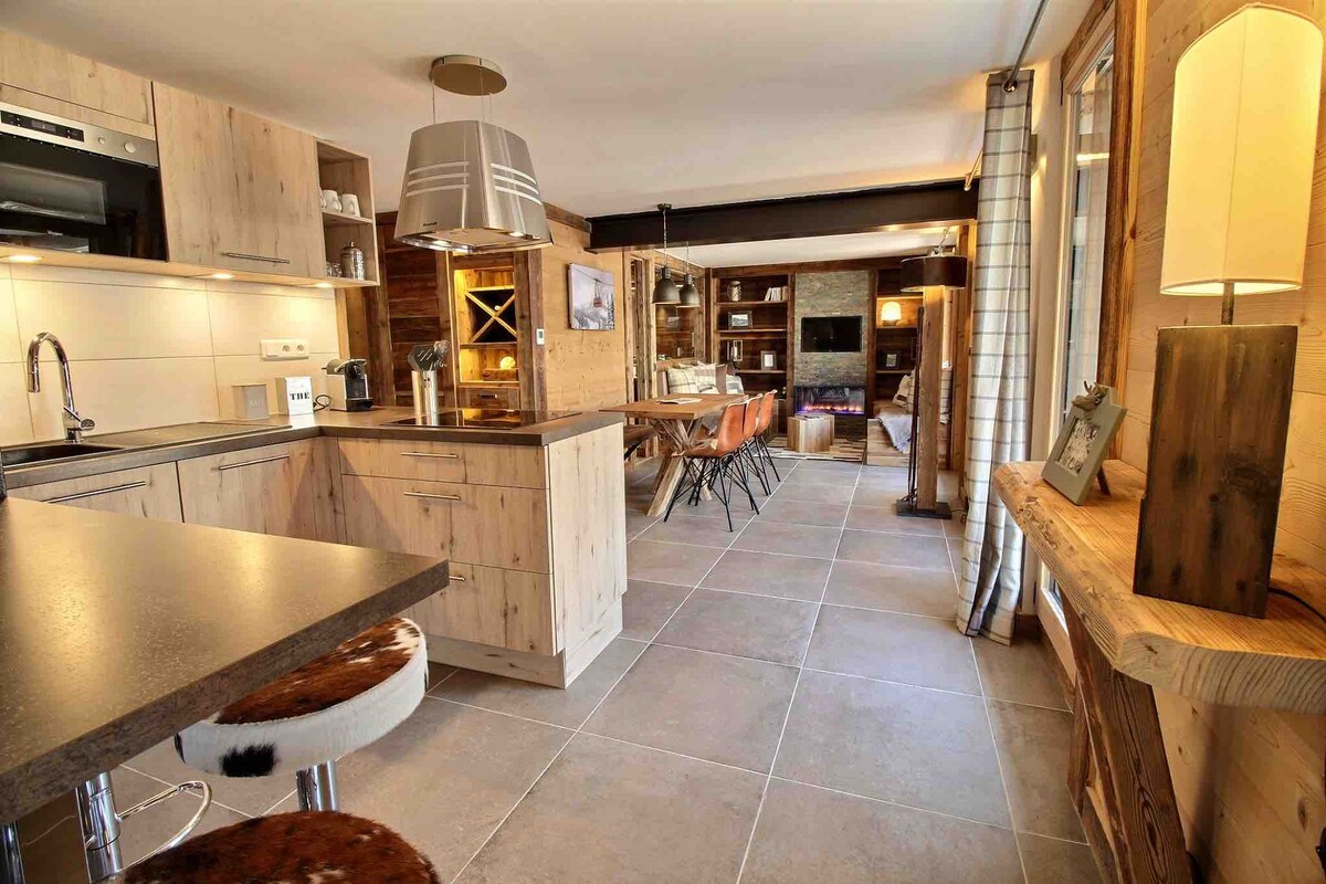 Apartamento muy bonito en chalet de piedra y madera. 3 dormitorios, 2 baños y 2 aseos. Garaje interior. Muy cómodo y bien equipado. Juegos para niños (¡y adultos!), libros. Equipamiento: raquetas de nieve 5 pares, 2 trineos, lavadora, lavavajillas, cafetera Nespresso, aparato de raclette y fondue, olla a presión, exprimidor, rallador eléctrico, batidora, mantas... Autobús de esquí gratuito al pie de la residencia en invierno. Cerca de rutas de senderismo. ¡Ideal para una estancia familiar o con amigos en la montaña!