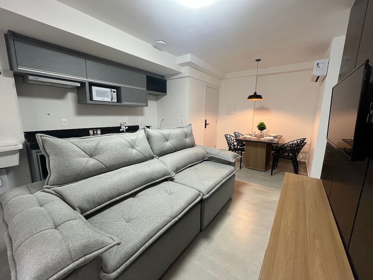 ¡Bienvenido a la mariposa plana🦋 en Goiânia, frente al Hospital Hugo y al Parque Areião! Este mini apartamento ofrece recepción las 24 horas, gimnasio , tienda de comestibles, salón de belleza y servicio de garaje con monobrista. Relájate en la sauna, disfruta de la piscina y cuenta con nuestra lavandería para tu comodidad. El apartamento cuenta con ropa de cama, toallas, secador de pelo, plancha y todos los utensilios de cocina para las comidas. ¡Tu animal con la tarjeta de vacunación será bienvenido!