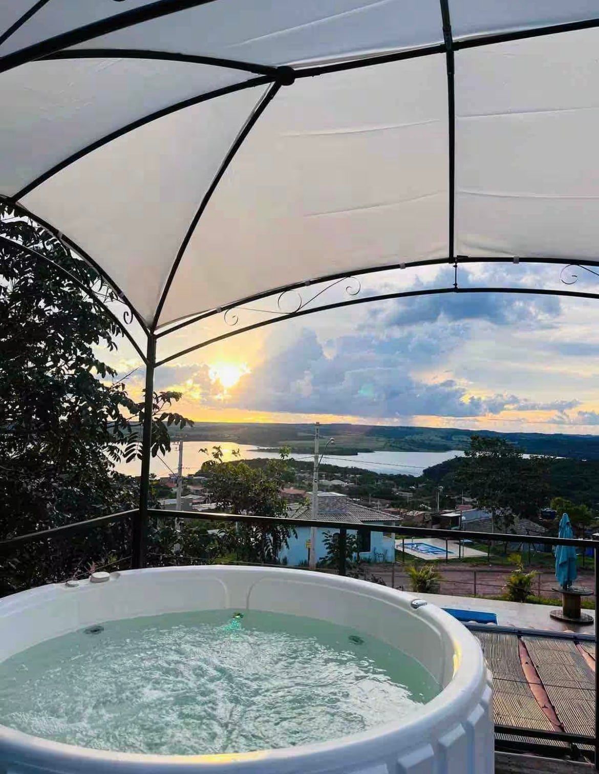 Estamos a 80 km del centro de Brasilia. Lleva a toda la familia a este gran lugar con mucho espacio para divertirte. Ofrecemos una vista impresionante del lago Corumbá 4, desde la puesta de sol fantástica . Tenemos 5 dormitorios , uno en suite, cocina completa equipada con cocina industrial, nevera, microondas, horno y utensilios de cocina, área al aire libre con terraza , spa con calefacción eléctrica y cromoterapia, piscina y spa con calefacción solar, zona de descanso, barbacoa , horno y cocina de leña.