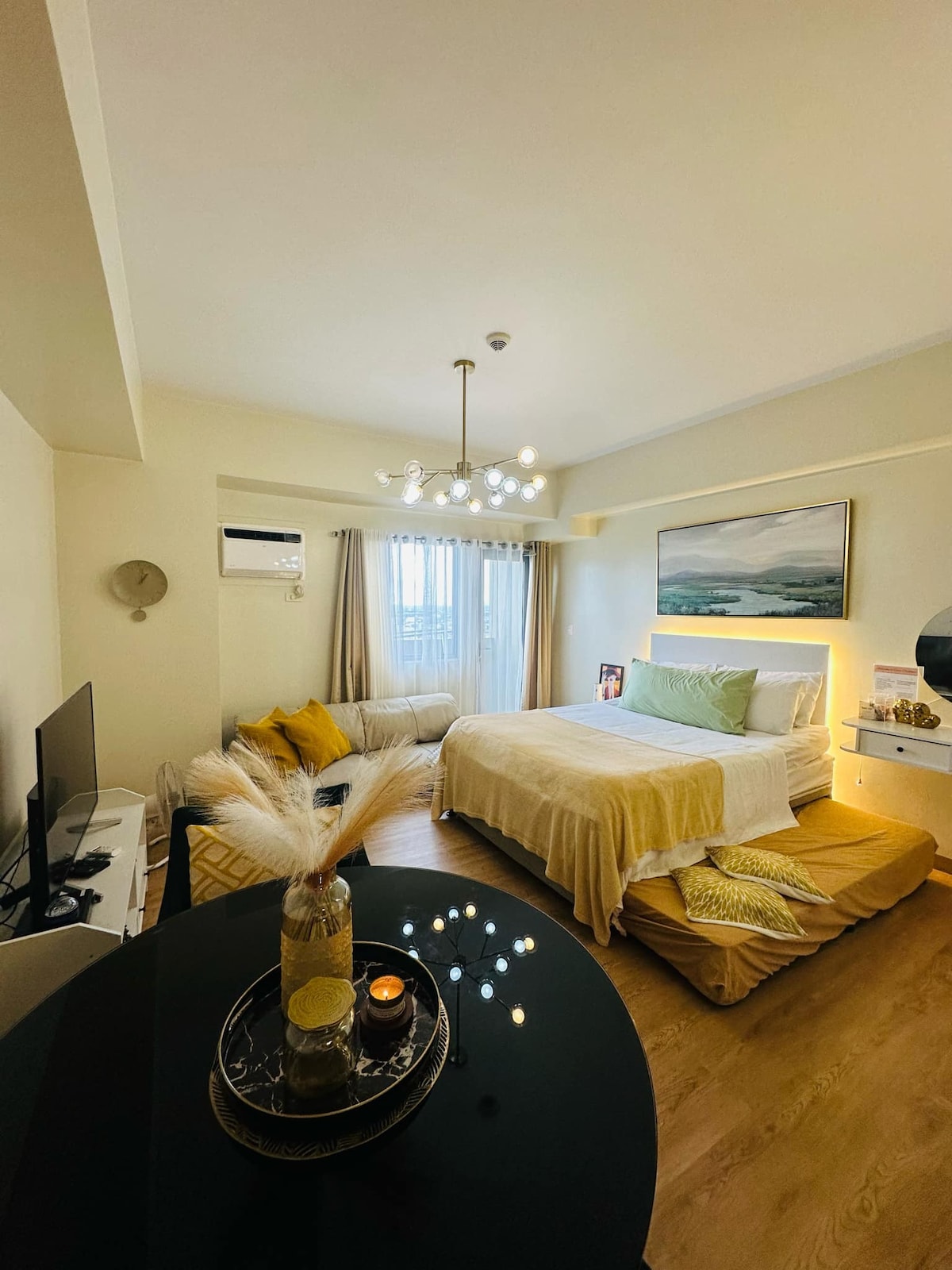 Disfruta de esta hermosa unidad ubicada en Araneta City, donde todo está a tu alcance. Al entrar en la unidad, serás recibido por una cocina con utensilios de cocina completos. Además, el baño tiene ropa de cama completa con agua fría y caliente y un bidé. Relájate y disfruta de tu sueño con una cama tamaño queen con colchón de alta calidad y almohadas suaves y un aire acondicionado superfrío. Mira en un nuevo televisor inteligente de 43 pulgadas con cuenta premium de Netflix y resolución 4K. Internet de alta velocidad de 100 MBPS.