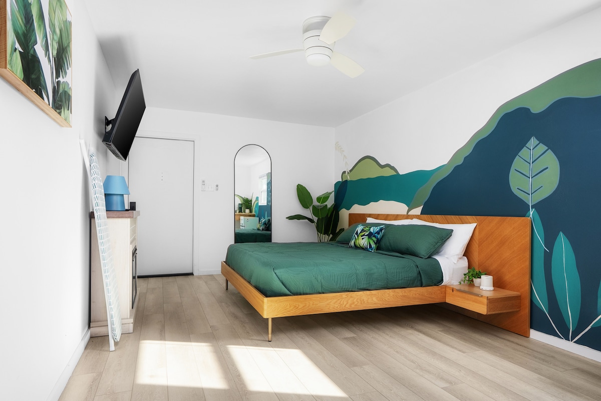 Motel Miya | Amplio dormitorio con cama tamaño king + litera tamaño queen