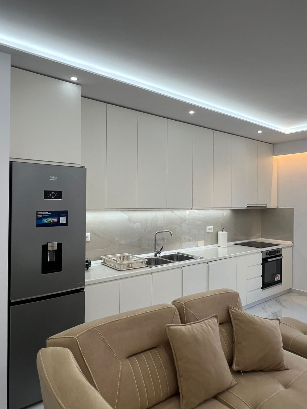 Apartamento moderno y espacioso(85 metros cuadrados) a 200 metros de una de las playas más bonitas de Durres"Pista Iliria" Cuenta con todos los electrodomésticos necesarios: Wifi 5g, Smart TV 4k con Netflix, lavadora, lavavajillas, horno microondas, cafetera, aire acondicionado doble, balcón grande con plantas. Hay plazas de estacionamiento gratuitas gratuitas El centro de Durres está a 3 km, el aeropuerto de Tirana a 30 km, la ciudad de Tirana 35. En la zona hay farmacias, tiendas, supermercados, bares y restaurantes. Parada de autobús debajo del apartamento Acepta estancias largas