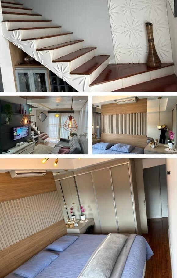 Casa Loft nueva en el barrio de Glória, en la mejor ubicación de Joinville. El loft consta de una sala de estar con cocina completa, equipada con nevera, cocina y microondas, además de cafetera y utensilios de cocina. Además, una habitación muy acogedora en el piso de arriba, con TV de 50”, 1 cama king (que se puede separar en 2 individuales) y 1 aire acondicionado frío y caliente. La habitación también tiene un sofá cama si es necesario. Relájese en este espacio tranquilo y elegante.