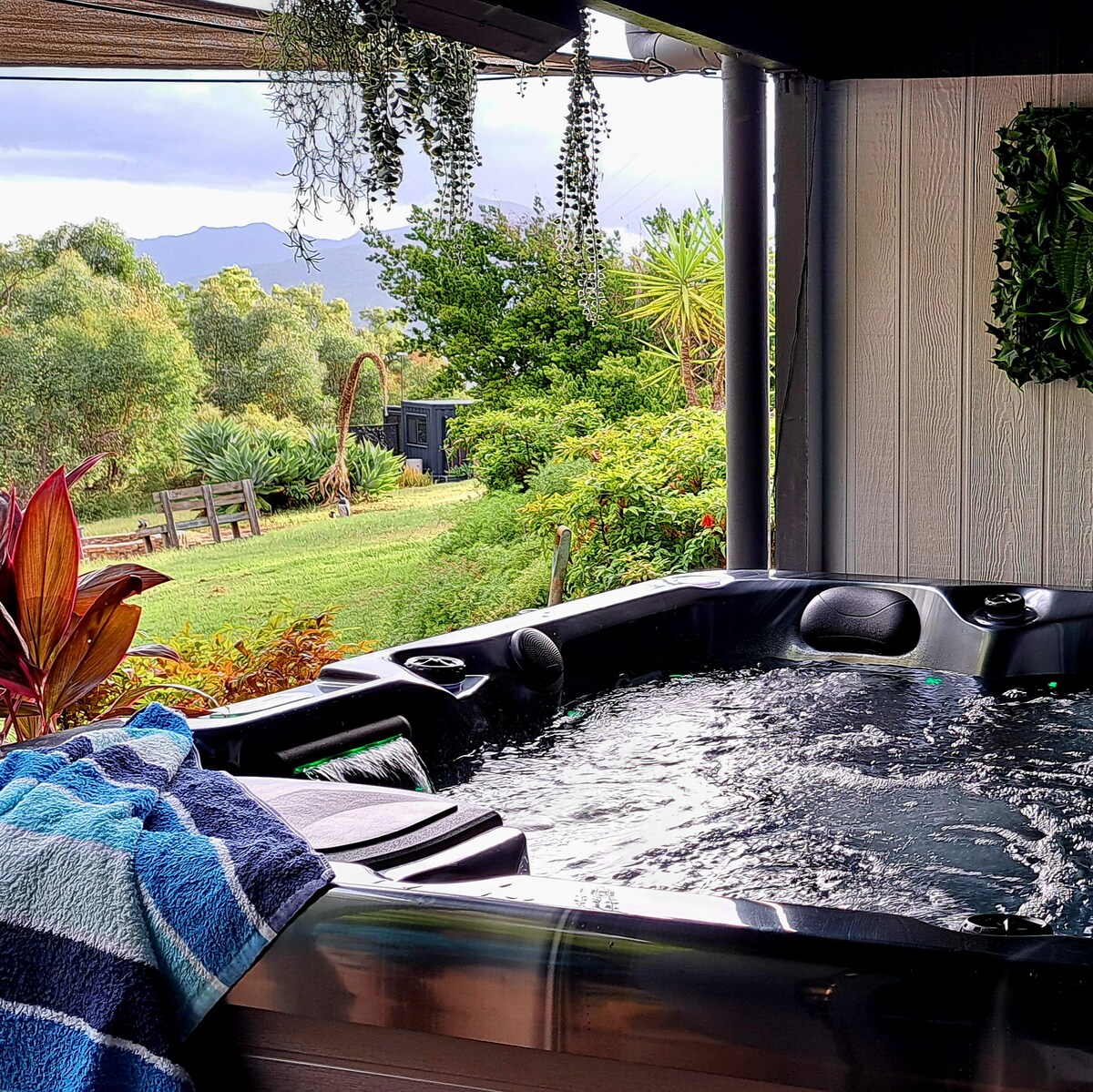 Escape to this secluded, nature-filled retreat Soak in the oversized outdoor bath under the stars (bubble bath included!), relax around the fire pit with marshmallows, and ambient festoon lighting, or unwind in cozy, stylish interiors and modern comforts. The perfect romantic getaway or peaceful solo escape. Note: we are in Tamborine, not Mount Tamborine. 7min to the Bearded Dragon Hotel 7mins to Coles/bottle shops/Chemist etc 50min to Brisbane City 1hr to Gold Coast beaches
