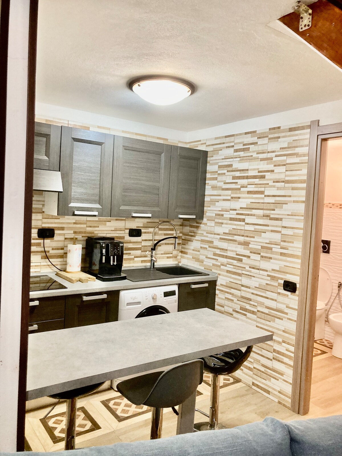 Nuovo appartamento con ampie vetrate sul giardino privato con vista sulle colline in direzione di Capo Caccia. Zona living con angolo cottura e vetrate scorrevoli sul giardino, area esterna con pergola. Camera matrimoniale con bagno, arredi di design con qualche tocco di mobilio ed artigianato sardo. Doccia esterna incastonata nella pietra. La residenza è immersa nel verde a soli 4 chilometri dal centro cittadino, vicino ai principali servizi e alle spiagge, lontano dal traffico e dai rumori.