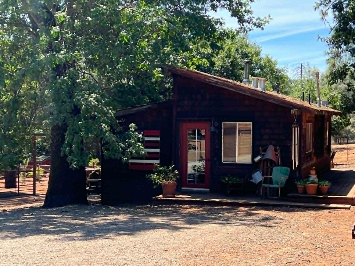 Private off-grid studio cabin on 10 secluded acres near Collins Lake and Bullards Bar. Solar powered with running water, bathroom, and covered porch. Gated property with BBQ pit and total privacy. Located in a small off-grid homesteading and tiny home community in the pines with cool, respectful neighbors. Accessed by a 4WD dirt road. About 1 hour from Sacramento, 30 minutes to Yuba City and Oroville, and 45 minutes to Grass Valley. Ideal for long-term, quiet off-grid living.