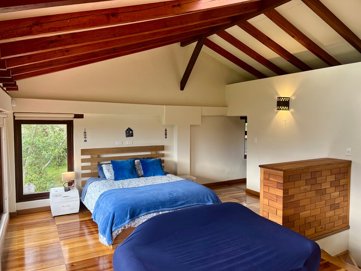 Villa de los Juanes es un refugio perfecto para relajarse y conectarse con la naturaleza. Nuestra casa te ofrece dos habitaciones independientes con camas dobles, comedor, baño, estudio de trabajo, cocina equipada, patio al aire libre, BBQ, Jacuzzi, estacionamiento privado y 3.400 mts de espacio verde. Brindamos wifi rápido , televisión, libros y juegos de mesa. Déjate encantar por la paz que se inspira este hermoso lugar. A sólo 10 minutos en carro de Villa de Leyva (5 km).