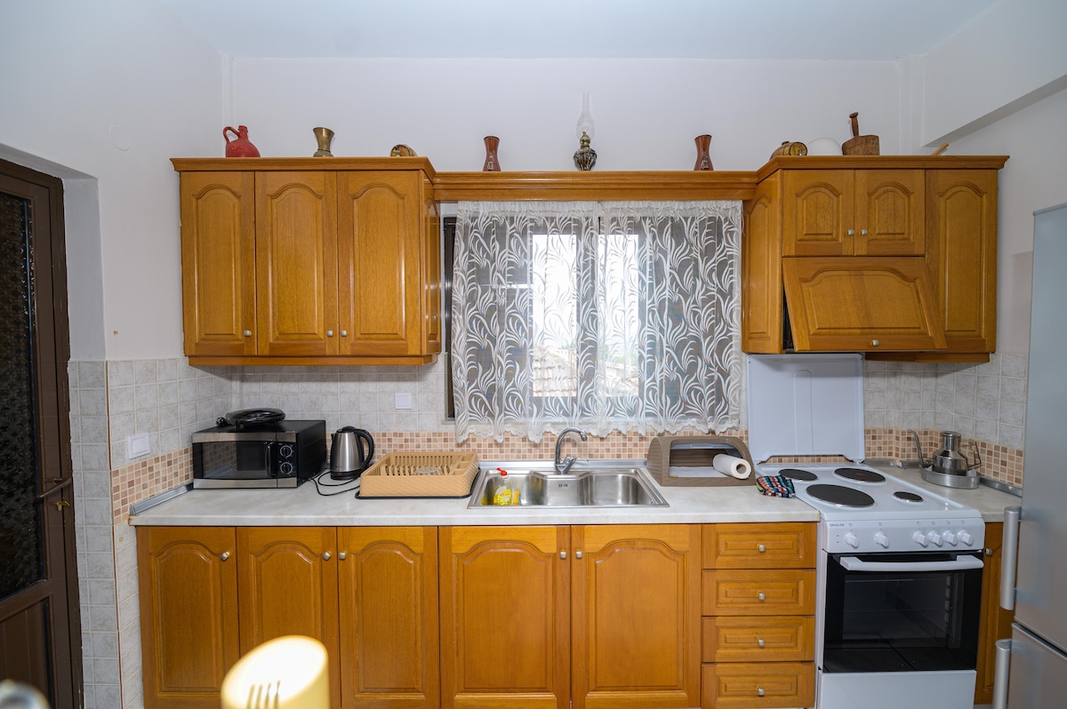 Apartamento bellamente decorado en una casa renovada, a dos minutos del centro de la Antigua Olimpia. Tiene wifi,aire acondicionado,lavadora, calefacción,TV y primera necesidad. Entrada privada,cocina, dos dormitorios,un baño. Patio exterior con estufa de leña y barbacoa. Estacionamiento. La antigua Olimpia,una ciudad de 1200 habitantes, el lugar de nacimiento de los atletas olímpicos está a 2 km. Allí conocerás restaurantes,cafeterías y todos los servicios necesarios.