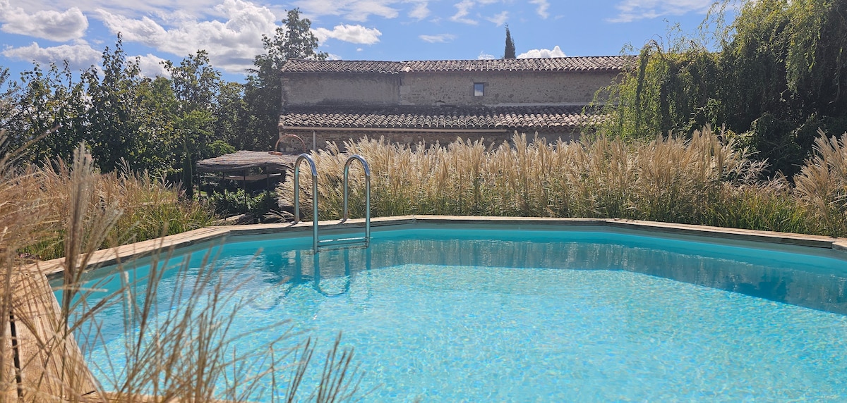 Casita en la naturaleza de Ardecha con piscina