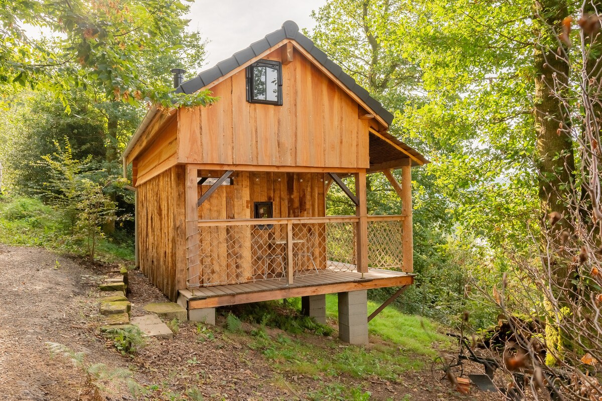 Ubicada en el corazón de un bosque, nuestra cabaña con comodidad de 5 estrellas le espera al otro lado de un puente de más de 20 metros. Aquí no hay vecinos. Un ventanal con efecto espejo te ofrece unas vistas impresionantes de un paisaje tranquilo y relajante, sin temor a ser observado. Al caer la noche, una vez acurrucado en su cómoda cama, podrá elegir entre observar a los animales o ver una película en nuestro retroproyector... y con nuestro cielo estrellado, es como si durmiera a la luz de las estrellas. ✨