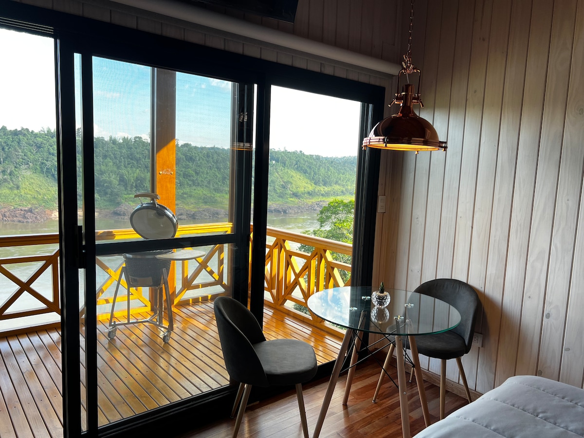 Cálida cabaña de estilo rústico a orillas del lago Nahuel Huapi con hidromasaje, hogar a leña, y deck. Monoambiente creado para el relax y el romanticismo con vista al amanecer y salida de la luna sobre el lago. Smart TV e internet por FIBRA OPTICA con wifi para trabajar. Una kitchinette con todo lo necesario, incluyendo cafetera dolce gusto. Caja de seguridad para resguardar tus notebooks al ir de paseo. Baño completo. Pool, ping-pong. Playa: Kayak y standup paddle. Desayuno continental.