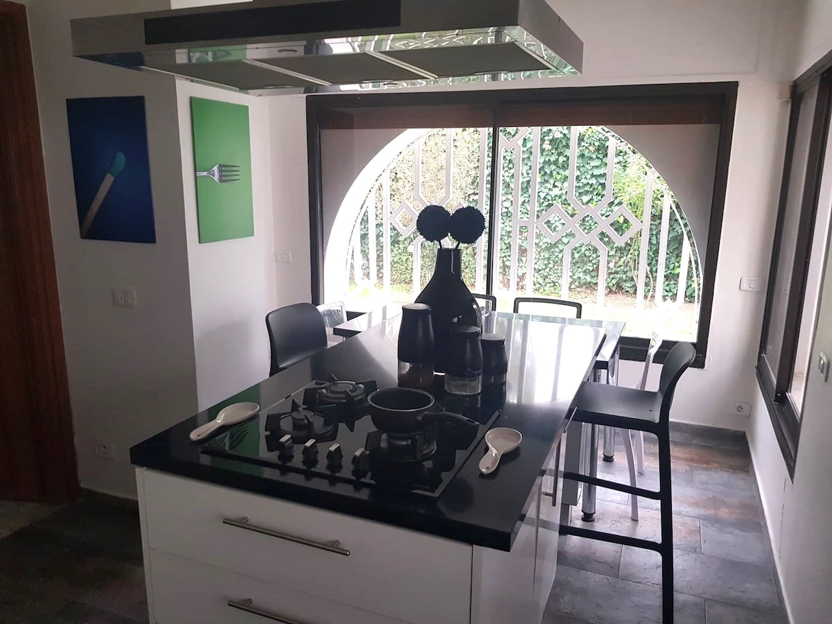 Moderna mini-casa en una tranquila zona de villas Ennasr 2. Entrada privada en la carretera principal. como tu propia casita|Compacta pero totalmente equipada: Este elegante departamento está diseñado para la privacidad, la comodidad, la calma y la conveniencia: ideal para parejas, viajeros solos, huéspedes mayores 🌿 LO más destacable: • Entrada privada, planta baja, sin espacio compartido. • Registro de entrada automático y estacionamiento privado • Aire acondicionado y calefacción. - WiFi • Televisión inteligente y acceso a streaming • Cocina pequeña totalmente equipada • Elegante sala de estar.