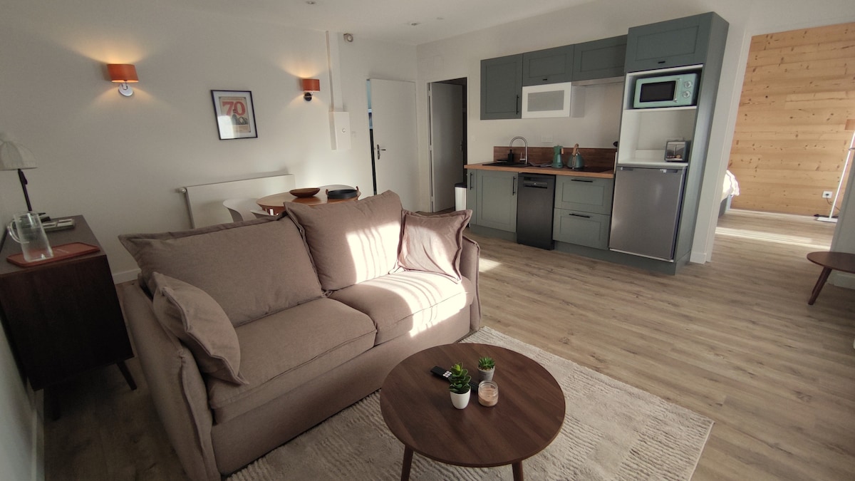 Te damos la bienvenida al estudio "Le City-Aux 4 Logis". Situado al lado de la carretera y la Voie Verte, ya sea a pie, en bicicleta o en coche, estarás tan cerca de la estación de tren Foix, como la magnífica ruta de senderismo Terrasses du Pech o el centro histórico y su castillo. Por lo tanto, debe tenerse en cuenta que el tráfico es bastante intenso durante el día y se reduce a partir de las 7 p. m. Está equipado con doble acristalamiento y cortinas acústicas de alta gama para reducir este inconveniente lo mejor posible.