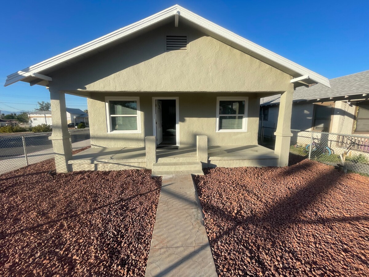 Destino tri-estatal CA, AZ, NV. Deje atrás el ajetreo y el bullicio y disfrute de este hogar lejos del hogar. Ubicado junto a la Ruta 66 y el centro de Needles, encontrará este pequeño encanto vintage de 1925 que ofrece todo lo que necesita y está a solo 5 minutos del río Colorado, a 10 minutos de Pirates Cove, a 20 minutos de Laughlin NV y a 35 minutos de Lake Havasu AZ. Esta casita de 1 dormitorio y 1 baño tiene 1 cama tamaño queen, 1 sofá cama tamaño queen, 1 cama plegable individual, estacionamiento para vehículos recreativos y botes con conexiones, asientos al aire libre, jacuzzi, fogón y mucho más.