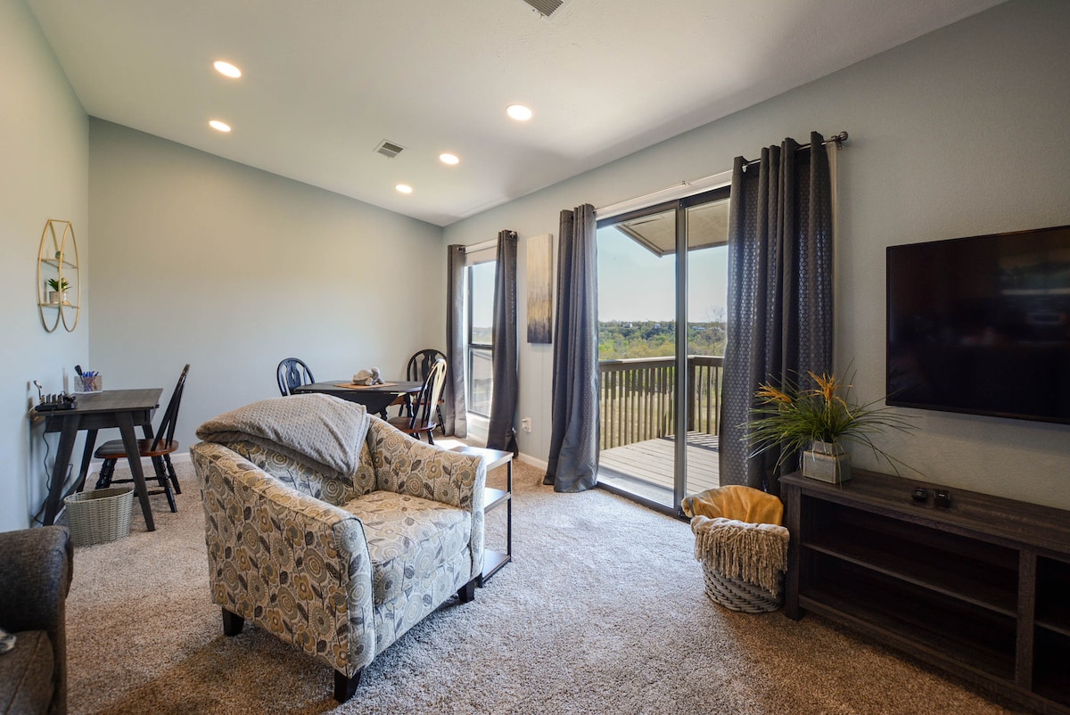 ¡Escápate a una nueva casa del árbol de 2 pisos cerca de Beaver Lake! Disfruta de las vistas a la naturaleza desde la terraza con una bañera de hidromasaje empotrada, mantente cómodo con una chimenea eléctrica y cocina en la cocina totalmente equipada. Este refugio único ofrece 2 dormitorios (uno es un loft al que se accede por escalera), 3 camas y capacidad para 5 personas. Con wifi rápido y un sistema HVAC mini-split para el control climático específico de la habitación, te sentirás aislado pero cerca de las atracciones de Rogers. ¡Perfecto para una escapada tranquila y moderna!