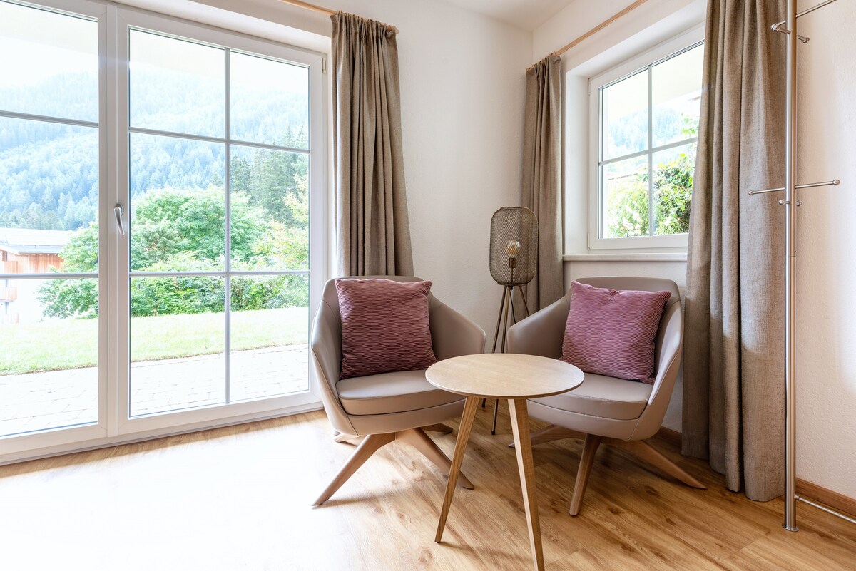 Category 3<br>1 Bedroom with Double Bed | 1 Sleeping Alcove with Bunk Bed | 1 Sofa Bed in Living Room | 1 Bathroom | 1 Guest Wc<br>Experience luxury and relaxation in our apartments at Arlberg.<br>With a view of the summit crowns of the Bregenzerwald, enjoy the highest comfort in our exclusive luxury apartments in Nesslegg | Schröcken.<br>At 63 m2, the apartments offer free WiFi, at least one Smart Tv and a wardrobe safe.