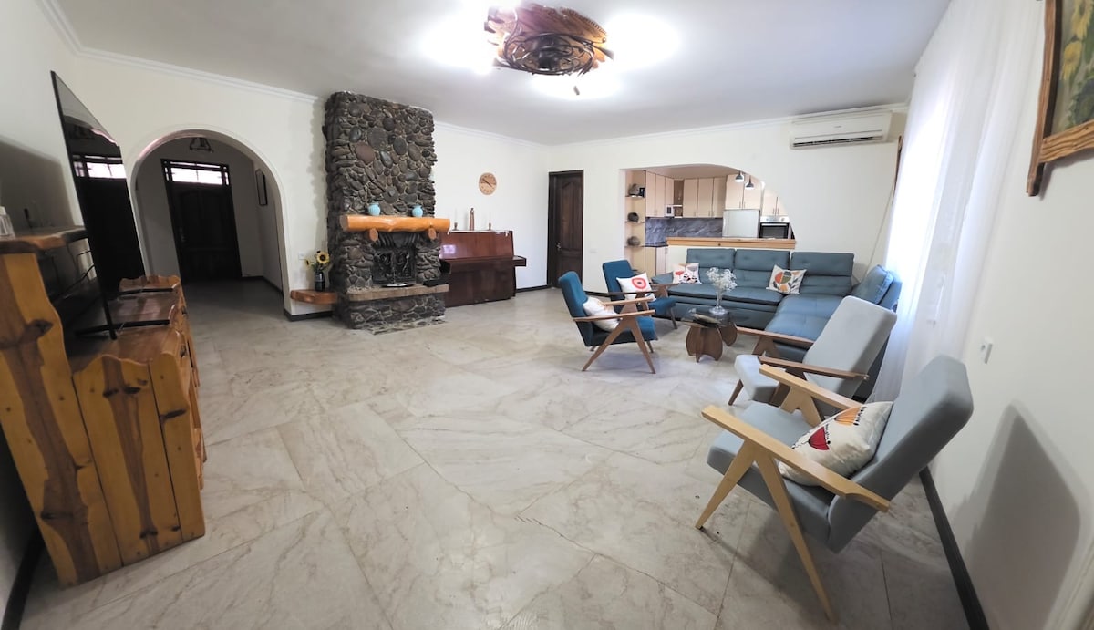 Relájese junto a la chimenea con un vaso de brandy "Ararat", en previsión de nuevas experiencias y descubrimientos. ¡Siente la calidez y la comodidad de nuestro hogar especial!Nuestra casa se encuentra en el pueblo de Baghramyan, a 20 minutos en coche de Ereván (en taxi por 4 $ o en el autobús 205, que pasa cada 15 minutos). A poca distancia hay un supermercado y tiendas, hay un parque con columpios para niños. Ofrecemos a todos los huéspedes un traslado gratuito desde o hacia el aeropuerto y proporcionamos una tarjeta SIM con un número local e Internet.