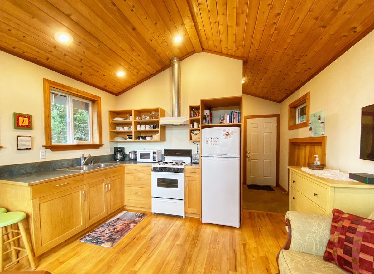 Imagínate en el hermoso bosque del noroeste del Pacífico en un acogedor estudio con una sensación de "cabaña en el bosque". Cuenta con todo lo necesario, una cama tamaño queen, cocina americana, mucha privacidad e incluso una lavandería, ¡lo que es una gran ventaja! Excelente ubicación para recorrer el pintoresco pueblo pesquero de Gig Harbor y sus alrededores.