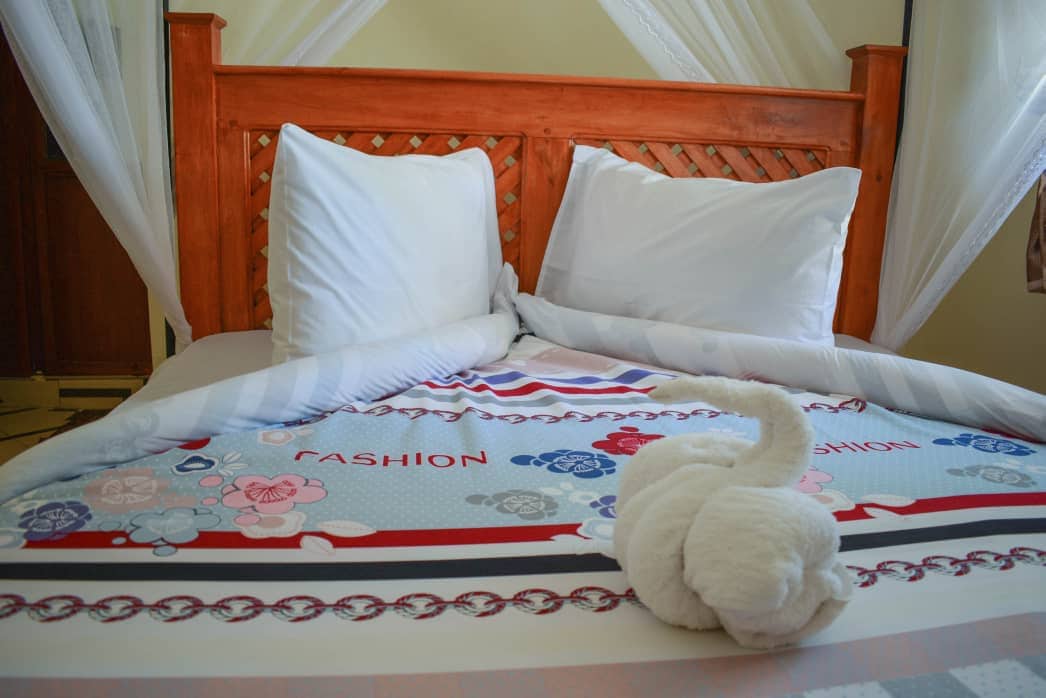 Relájate en esta pequeña casa de nueva construcción. Perfecta para alojarte antes o después de tu safari. Lejos del ajetreo de la ciudad y, sin embargo, a pocos minutos en coche, te ofrecemos un lugar que te hará sentir como en casa. Disfruta de las vistas y de la puesta de sol en el balcón o reserva el desayuno con nosotros y disfruta de las vistas de los plátanos y del monte Meru. La galería abierta te invita a relajarte. Si necesitas algo, siempre estamos ahí.