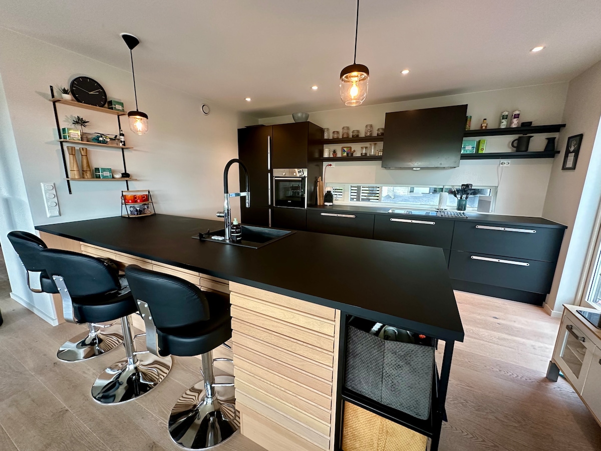 Casa moderna y espaciosa para familias con excelentes vistas, terraza y jardín. Relájate con toda la familia en nuestra moderna casa de 3 pisos, en un callejón sin salida tranquilo en una zona apta para niños. Disfruta de vistas espectaculares y una amplia terraza parcialmente cubierta en el piso superior. La casa cuenta con todas las comodidades para una estancia cómoda y es perfecta para familias con niños.