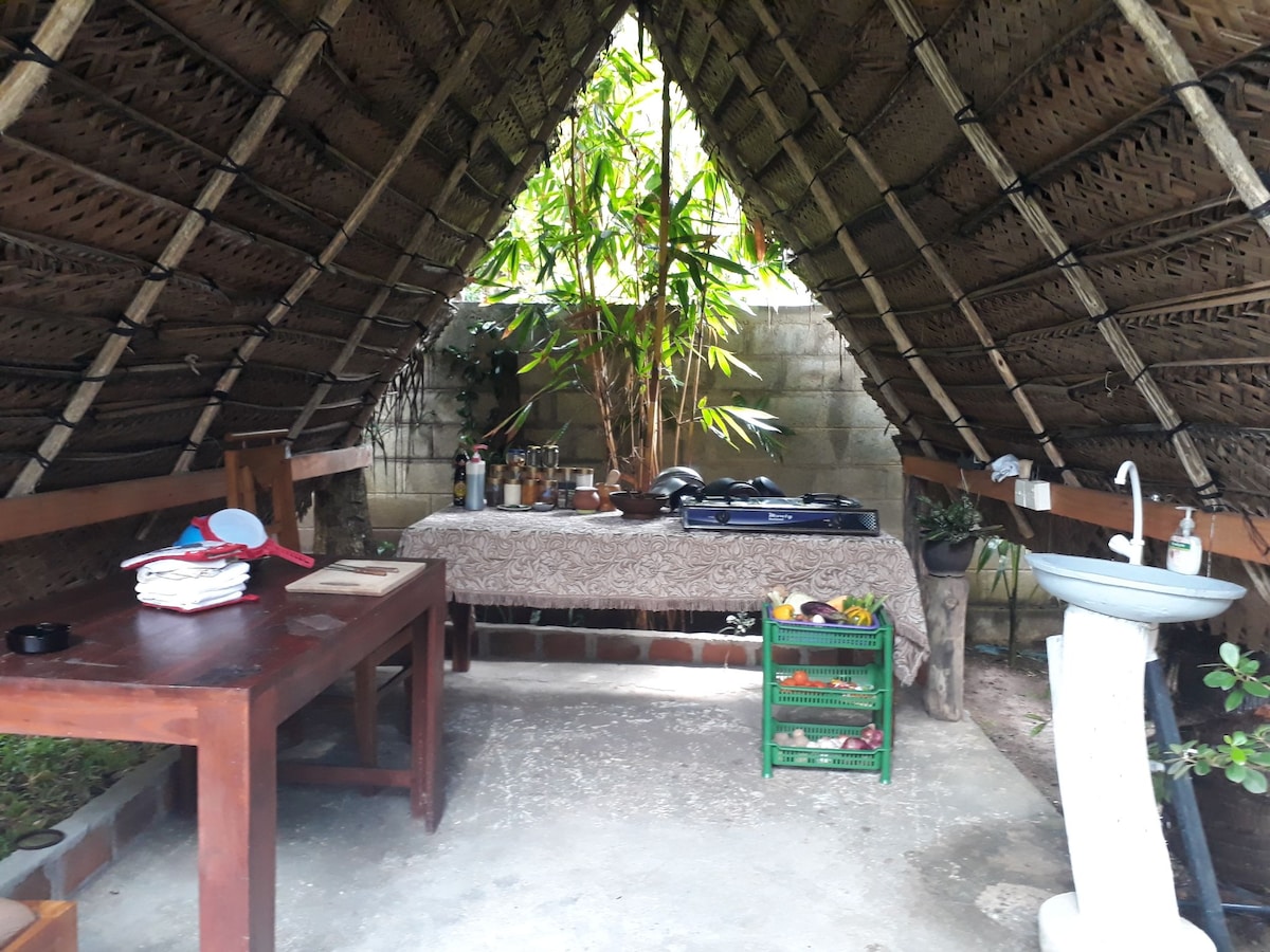 Es un refugio multifuncional de una habitación donde toda la familia vive, duerme, cocina y come. Es una casa bien construida que podría soportar los cambios en el medio ambiente, lo que la hace adecuada tanto para las estaciones secas como en las húmedas de Filipinas. Disfruta del encantador entorno de este romántico lugar en la naturaleza.