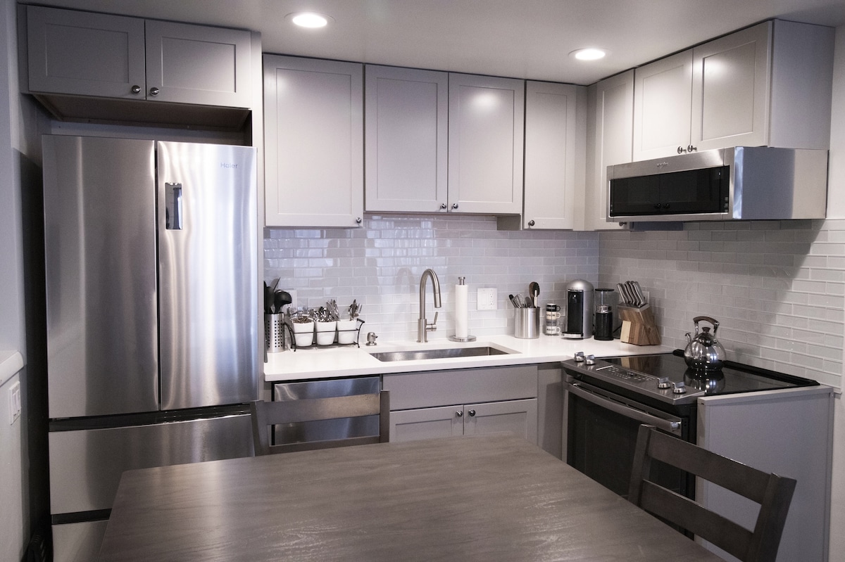 Impresionante apartamento de diseño en el centro de Aspen con vistas a AJAX. Una reciente renovación interior transformó el espacio en el refugio de lujo definitivo. Disfrute cocinando en una cocina de chef con encimeras y salpicadero de cuarzo, diviértase junto a la chimenea de leña con una barra personalizada y vasos de cristal o retírese por la noche en los dormitorios RH, ropa de cama Boll & Branch y tratamientos de oscurecimiento de ventanas. Vida fácil con lavadora/secadora Maytag en la unidad y estacionamiento asignado. ¡Bienvenido a Moby House Aspen!