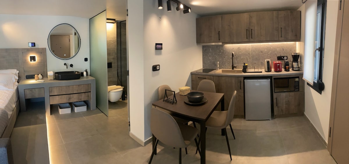 Bienvenido a la suite Garden en Urban Serenity Suites, un espacio moderno y autónomo en el tranquilo barrio de Argyroupoli, Atenas. A pocos minutos del metro y con fácil acceso al centro de la ciudad, al aeropuerto y a la costa sur, esta suite es perfecta tanto para viajeros de negocios como de placer. Sea cual sea el motivo que te traiga a Atenas, disfrutarás de la privacidad, el estilo y la comodidad de tu propio patio privado, ideal para relajarte, junto con el acceso a una piscina tranquila y semiprivada a solo unos pasos de tu puerta.