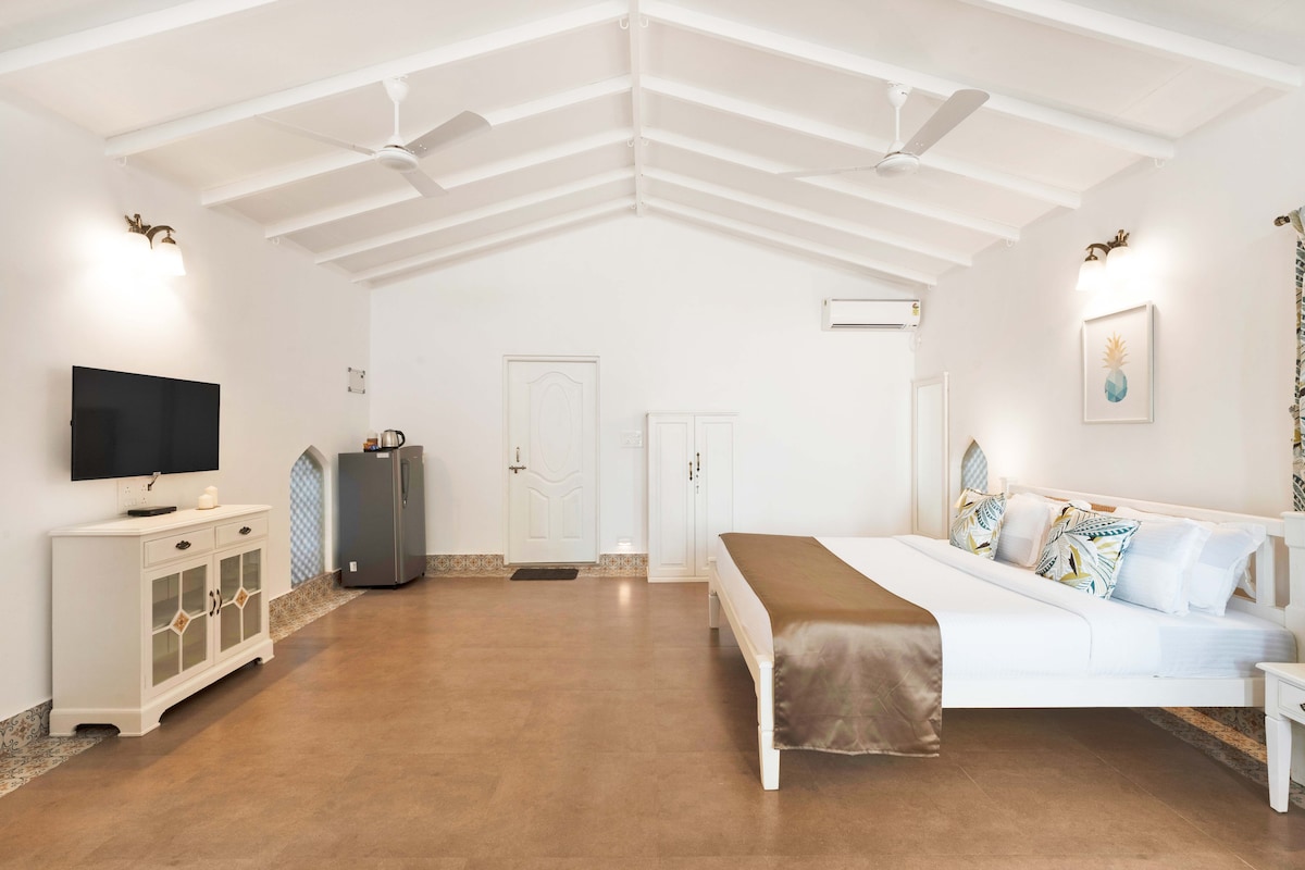 Bienvenido a este estudio de lujo para 4 personas con piscina en nuestro hotel boutique que combina estilo con sencillez para darte esa sensación de ‘en casa’ que deseas. Con una habitación acogedora y una cama grande y cómoda en la que te encantaría sumergirte, comida deliciosa y delicias visuales en todas partes, Este estudio promete capturar no solo tus ojos, sino también el corazón. Situado en el corazón de North Goa, a 5 minutos de Mall De Goa, todos los demás lugares de interés, incluidas las playas, los lugares para fiestas, los lugares históricos, etc., están a una distancia de aproximadamente 5-15 km.