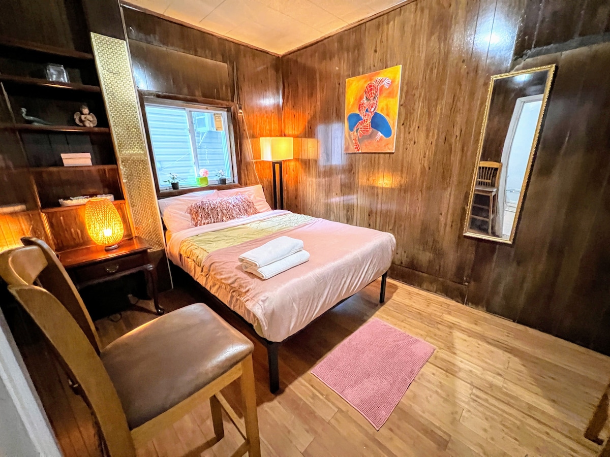 ¡Bienvenido a Vintage Luxe, un impresionante hito de 1894 en Sugar Hill restaurado en una lujosa boutique! Esta elegante unidad a nivel del jardín muestra una impresionante decoración neovintage, paredes de ladrillo visto y una ubicación privilegiada (¡Puntuación de tránsito 100!). El espacio incluye una cama tamaño queen, wifi de alta velocidad, una estación de trabajo dedicada y una cocina totalmente equipada. Sal a tu patio trasero privado con una hamaca, un lujo raro en Nueva York. Perfecto para viajeros solitarios, parejas o grupos pequeños que buscan una estancia céntrica y elegante.