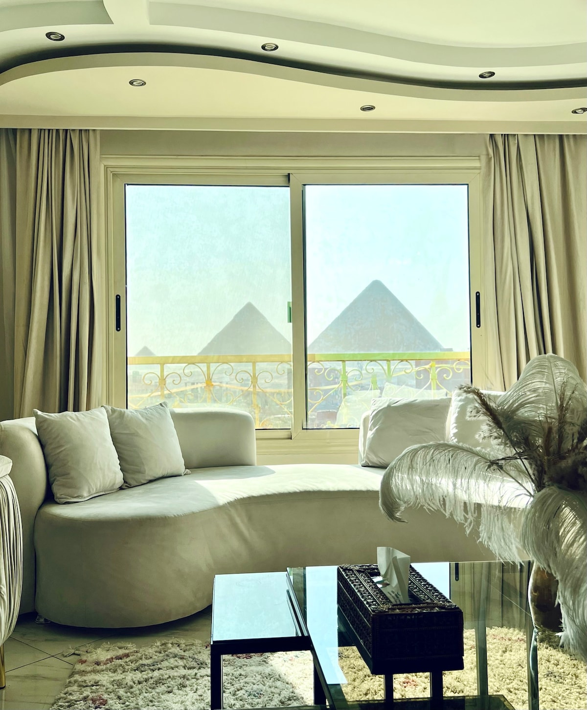 Enjoy your stay with Panoramic View of the Giza Pyramids,Sphinx Yes! view and pictures are all 100% real. (Be sure to check out our other listings too) Indulge in a stunning view of all the Giza Pyramids from anywhere within this contemporary oriental studio or while relaxing in the Jacuzzi. It is also a 10 min walk from the Pyramids entrance gate. To make the most of your trip, make sure to check out our experiences! We're committed to providing our guests the magical hospitality they deserve.