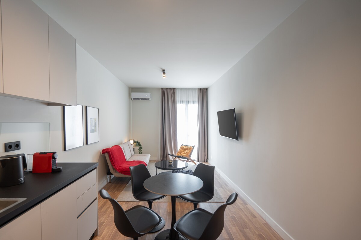 Bienvenido a este elegante y moderno apartamento en el primer piso, situado en el corazón de Kypseli, a pocos pasos de tiendas, cafés y restaurantes. Cuenta con una acogedora habitación, una cocina totalmente equipada para deliciosas comidas, un cómodo comedor y una televisión inteligente. Ideal para parejas, viajeros solitarios o huéspedes de negocios. El apartamento forma parte de un edificio boutique con servicios compartidos que incluyen gimnasio, jacuzzi, sauna y sala de reuniones que ofrece comodidad y un toque de lujo para tu estancia en Atenas.