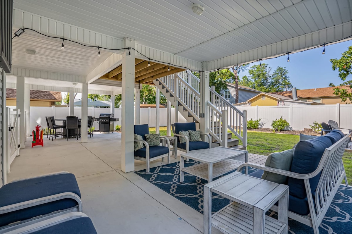 Family fun for all ages, located near the beach and intercoastal waterway. Safe central location with colorful artsy fun! New 2026 pinball. Lavish modern décor with comfortable King & Queen bedrooms. A short drive to family favorite Cherry Grove Beach. High tech sound & lighting systems, Dolby Atmos, LG OLED TVs, streaming & PS5 game system, arcade, foosball and new pinball machines. Tesla car charger. Full featured gourmet kitchen, Weber charcoal grill, and fire pit. Ready for play!