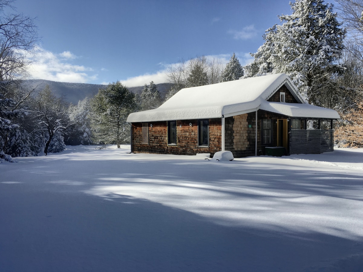 Escápate a The Paradise Cabin, una granja ecológica renovada del siglo XIX. Este refugio privado ofrece lujo moderno con diseño de casa pasiva, una sauna interior y una bañera profunda. Rodeado de naturaleza y más de 130 acres de tierras estatales, pero a solo minutos de Hunter y Tannersville. Perfecto para una escapada tranquila para parejas o familias pequeñas que buscan aislamiento y comodidad.