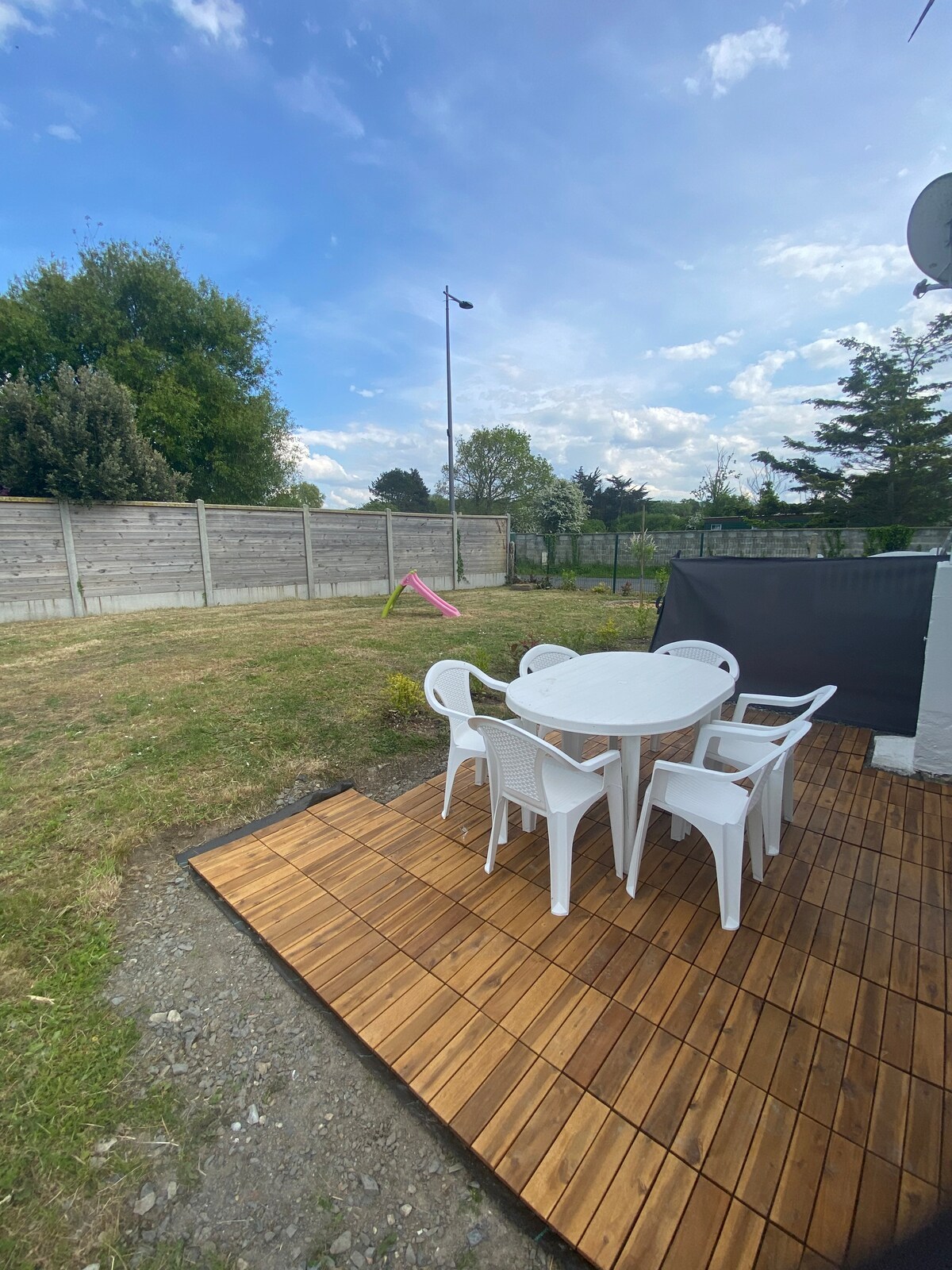 Séjour avec canapé bz, tv Cuisine aménagée. Salle d'eau avec douche, lave-linge, sèche-cheveux Grande chambre à l'étage en mezzanine : 1 lit 2 pers et 2 lits 1 pers. Equipement bébé sur demande : lit parapluie, chaise haute, matelas à langer Salon de jardin, portique balançoire commun Nous acceptons votre animal domestique (chat, chien) avec un supplément de 30 € pour le séjour (à régler sur place). Attention, terrain non clos. Prix indicatif selon la période et la durée.