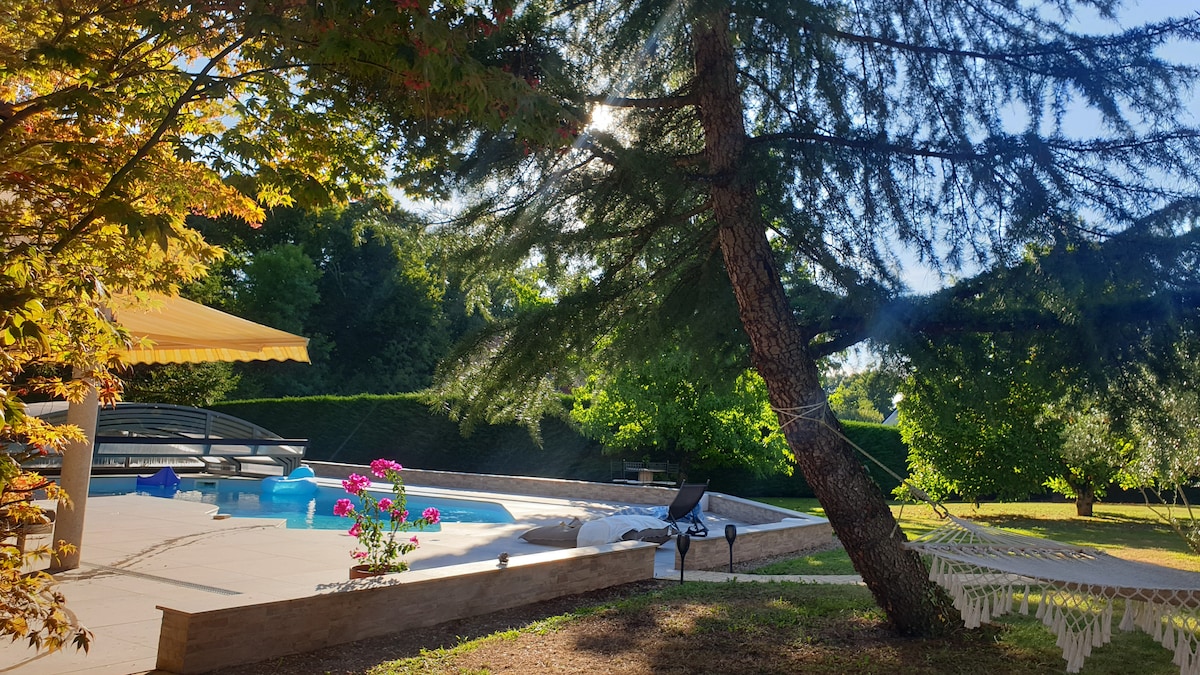 &Encantadora casa de campo en Besancón para 2 o 3 personas La Malate es un área muy segura y muy cerca del centro antiguo, pero te sentirás como en la campaña ! Si esperas silencio es el lugar perfecto Esta encantadora casa de un dormitorio es una antigua casa típica del siglo XVII (de 60M2 en dúplex) en un enorme parque junto al río Doubs Impresionante piscina de 12,5 m de largo con una preciosa casa de piscina con remo de agua y aquabike... Elegantemente decorada y recién renovada, hemos conservado los detalles arquitectónicos que hacen que la antigua casa sea interesante y hermosa, como el viejo pavimento, la quimioterapia, el techo "A la francaise"... Descripción : En la planta baja la sala de estar con cocina pequeña, baño En la primera planta gran dormitorio con cama tamaño king un escritorio y balcón soleado, Podemos proporcionarle bicicletas para unirse al centro por "ruta de velocidad" o puede unirse al centro de la ciudad vieja en autobús (5 minutos a pie) Wifi gratuito y aparcamiento Animal friendly (bajo petición) Estamos muy involucrados en el desarrollo sostenible. Esta casa ha sido renovada utilizando en la medida de lo posible los materiales y técnicas originales. El aislamiento se ha hecho con cáñamo, la carpintería fue construida a medida por un artesano local, y la pintura se basa en el agua. Las habitaciones están equipadas con camas de listones, colchones, almohadas hechas de componentes naturales y renovables en bambú, soja, lana, ropa de cama y látex natural (resina de árbol de caucho) certificado Max Havelaar. Las sábanas y toallas están hechas de algodón orgánico. Al menos, todos los productos de limpieza y lavado son lo más muvh posible orgánicos. Las habitaciones se limpian solo con vapor, jabón de Marsella (muy famoso producto de limpieza francés natural y tradicional), jabón negro, vinagre y bicarbonato de sodio. Los jardines se conciben y mantienen sin ningún producto químico, solo se proporcionan tratamientos orgánicos.